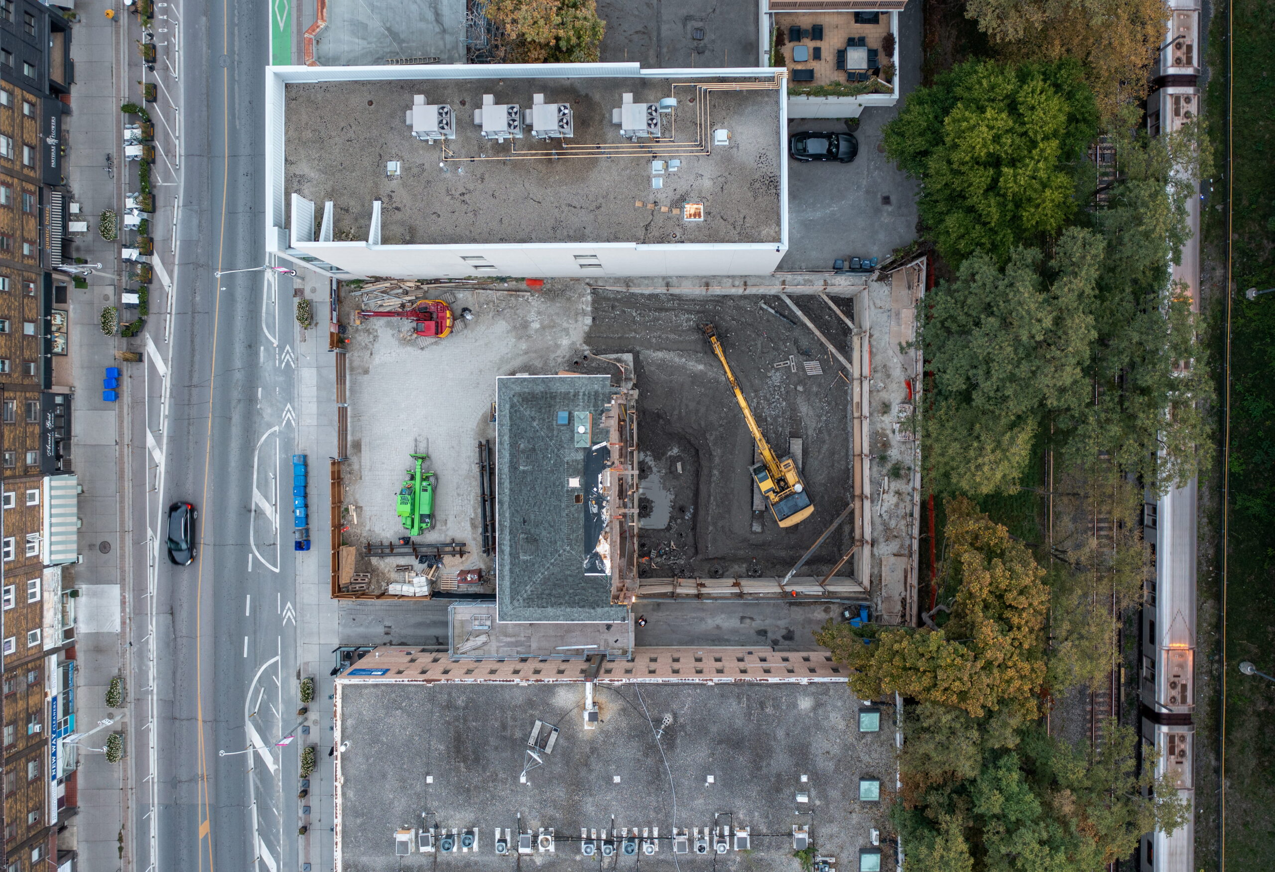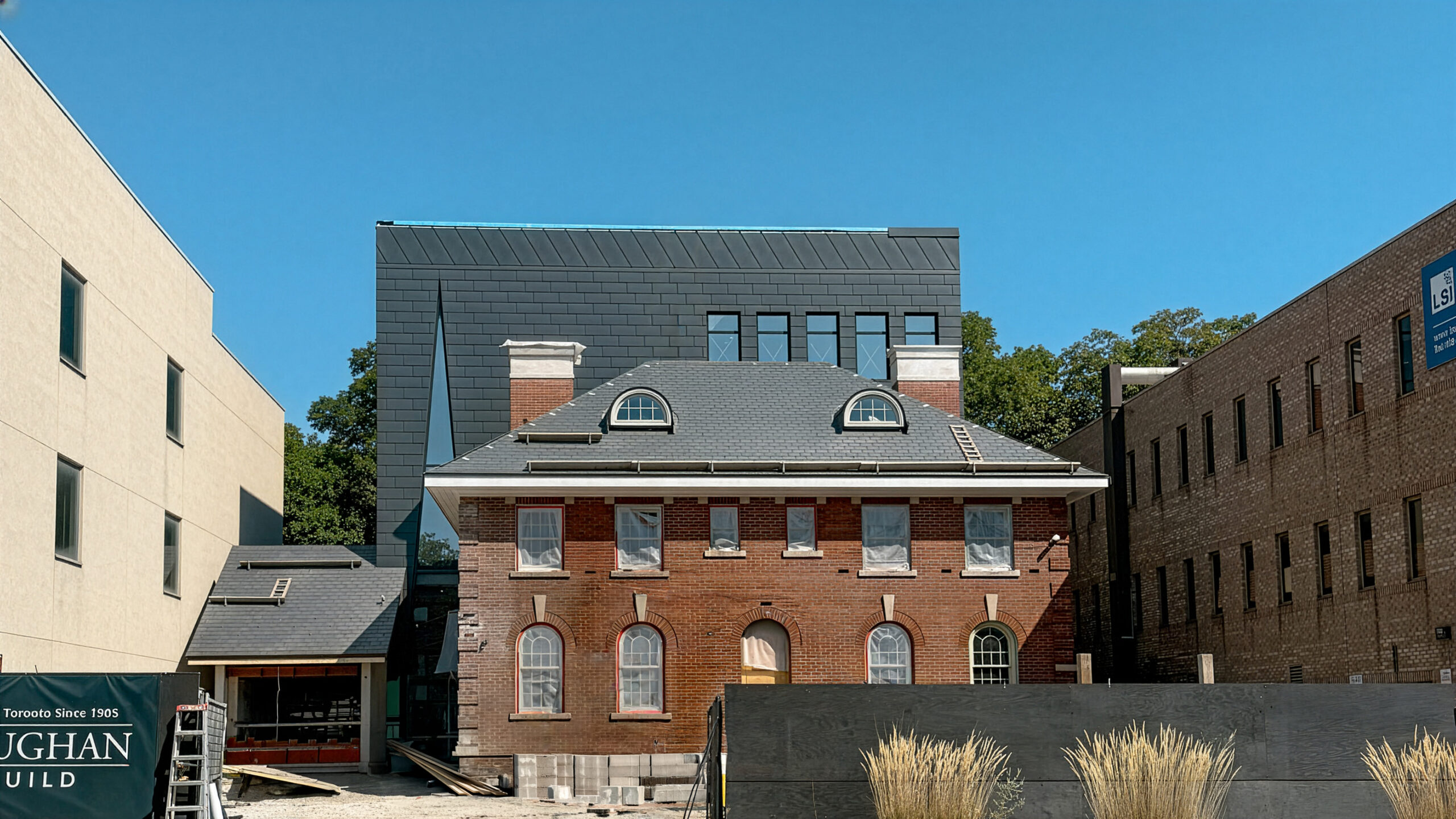The owner of this project wears many hats, including a businessman, philanthropist and live-performance impresario. The building, which will serve as his head office, has been imagined as his theatre. The rejuvenated century house acts as the ‘front of house,’ receiving the public within a variety of assembly spaces, while the new addition, or ‘stage and fly tower,’ rises behind housing the staff of ‘actors’ performing the daily ‘plays’ within. Durability and longevity are the cornerstones of this project’s sustainability, which has been manifested in part by the reuse of the bricks and mortar of the original house, thus pushing its embodied carbon forward another 100-plus years. Future resilience is built into the design by constructing the foundations and structure to accommodate an additional four storeys, in anticipation of future revisions to by-laws that allow greater height. This will minimize future deconstruction, thus pushing the addition’s embodied carbon forward as far as possible.